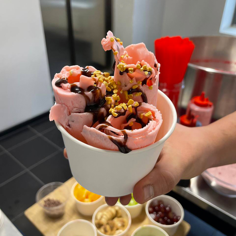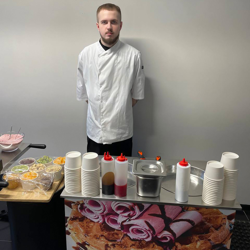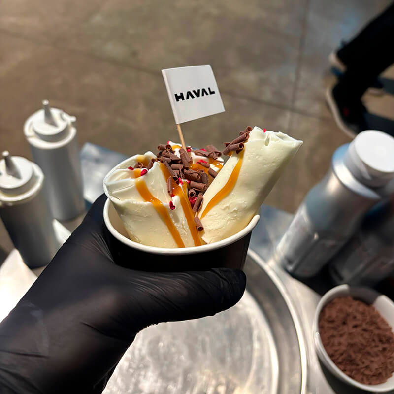 На ваших глазах искусный мастер создаст утонченное лакомство – жареное мороженое, которое восхитит всех своим вкусом и необычным внешним видом. Гости смогут увидеть, как рождается мороженое, а затем сами попробовать его, добавляя разные сиропы и украшения.
