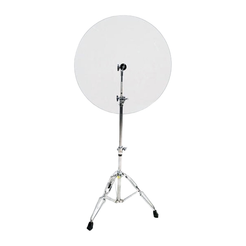 Прозрачный круглый звукоизолирующий экран из оргстекла диаметром 24 дюйма (61 см) и толщиной 6 мм. Размер крепёжной проушины — 13 мм. Экран надёжный и износостойкий. Особенность крепления позволяет быстро надевать диск на стойку для ride или crash, не снимая втулку. Подходит для изоляции акустических барабанов, тарелок, духовых, гитарных комбиков, голосов и т. п.